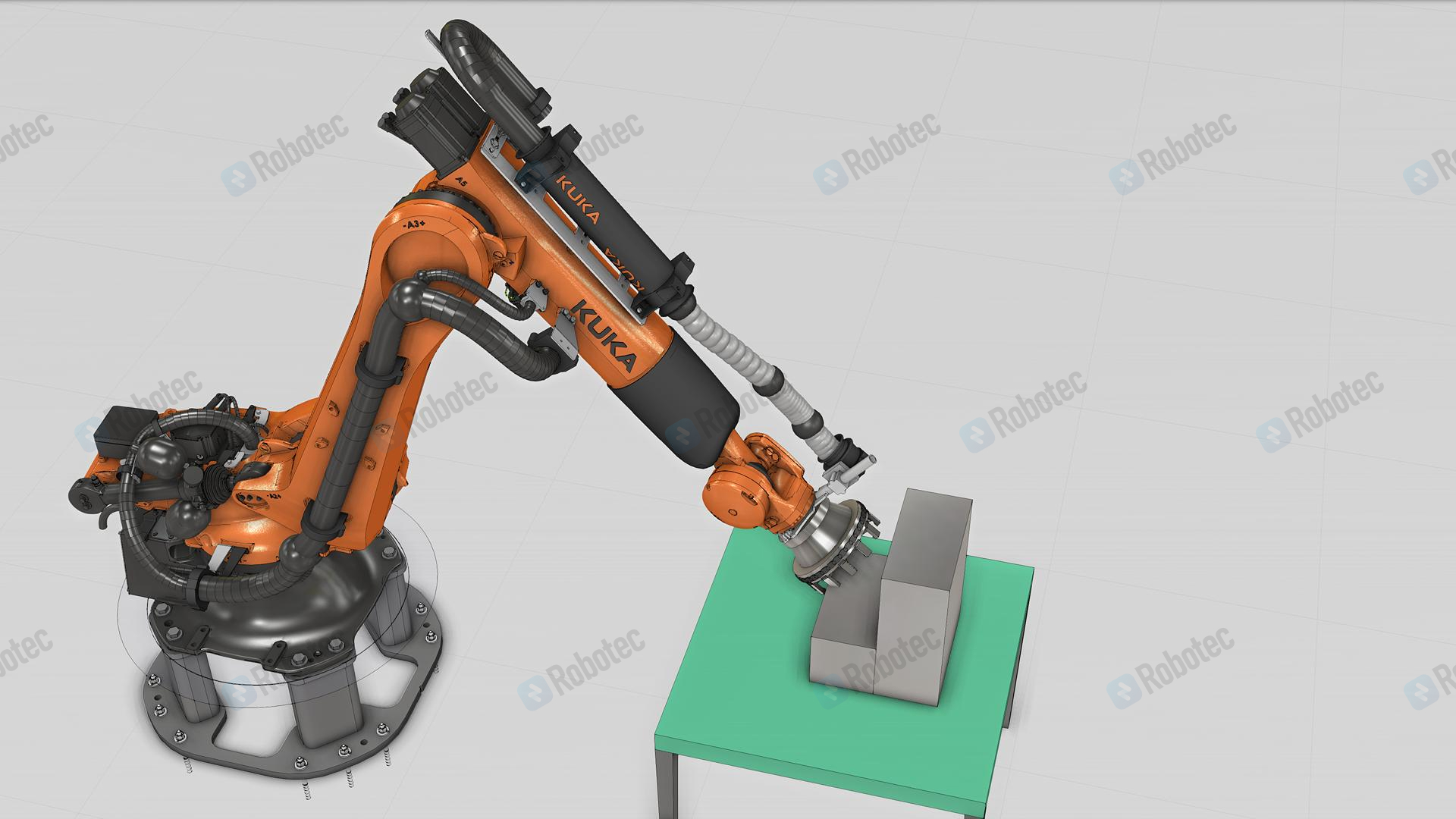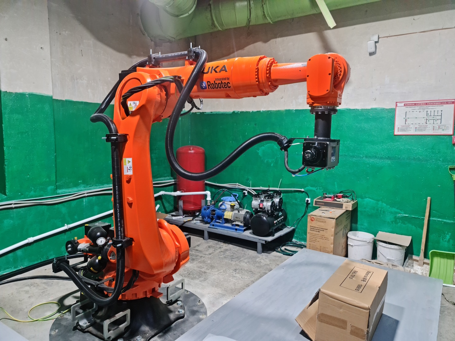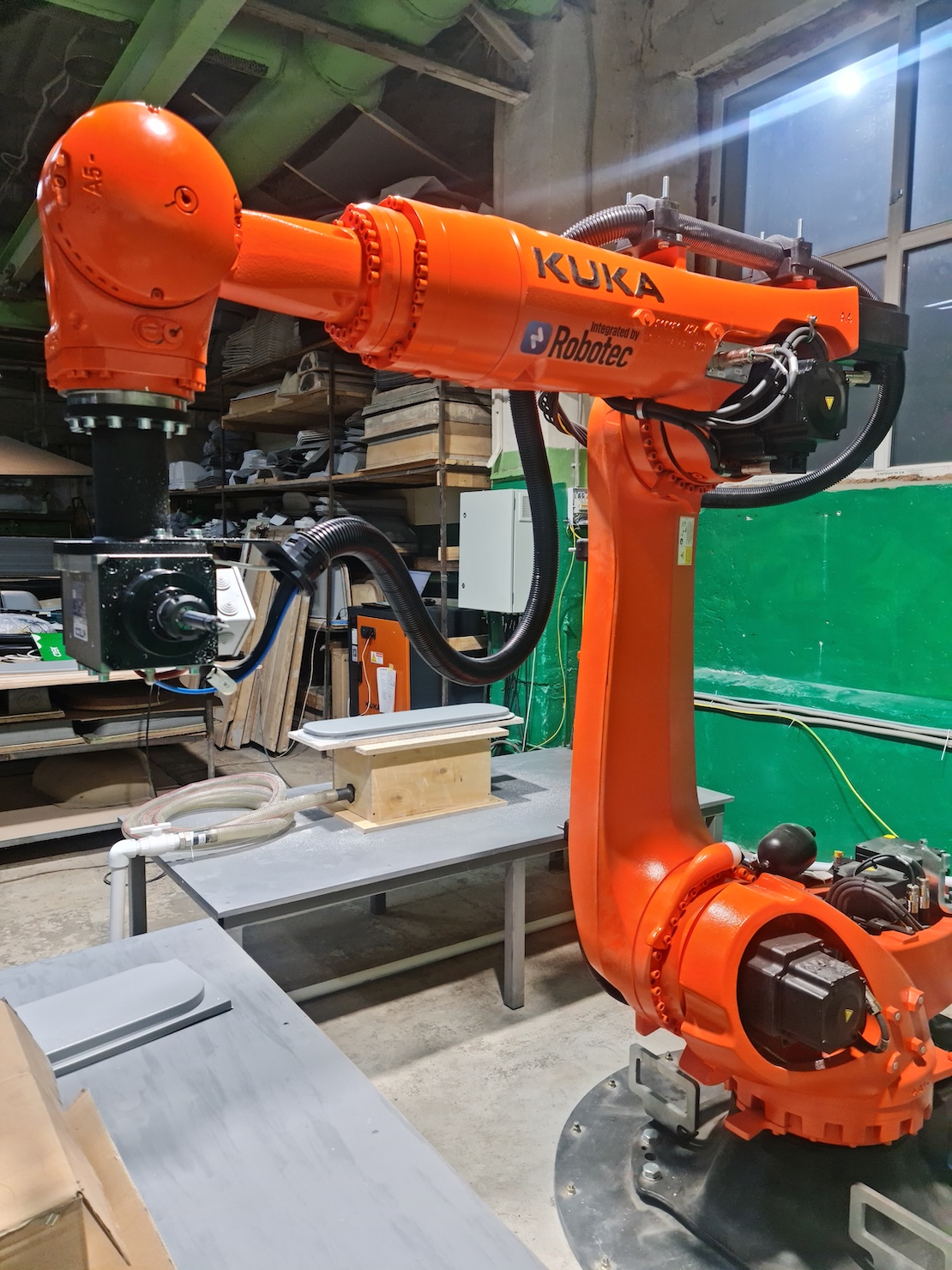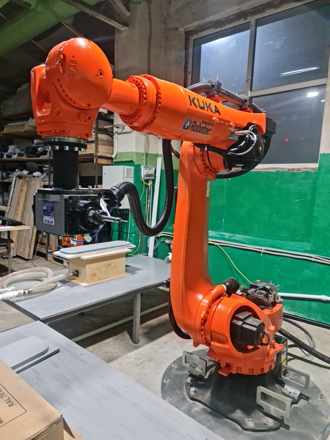 Для автоматизации процесса обработки деталей был подобран промышленный робот KUKA KR120 R2700-2, с грузоподъёмностью 120 килограммов для обеспечения усилия резания. На робота установлен двойной мотор-шпиндель с охлаждением